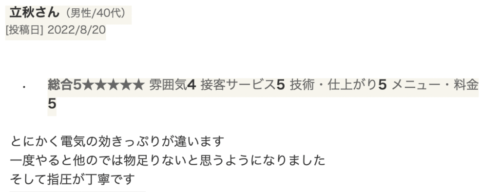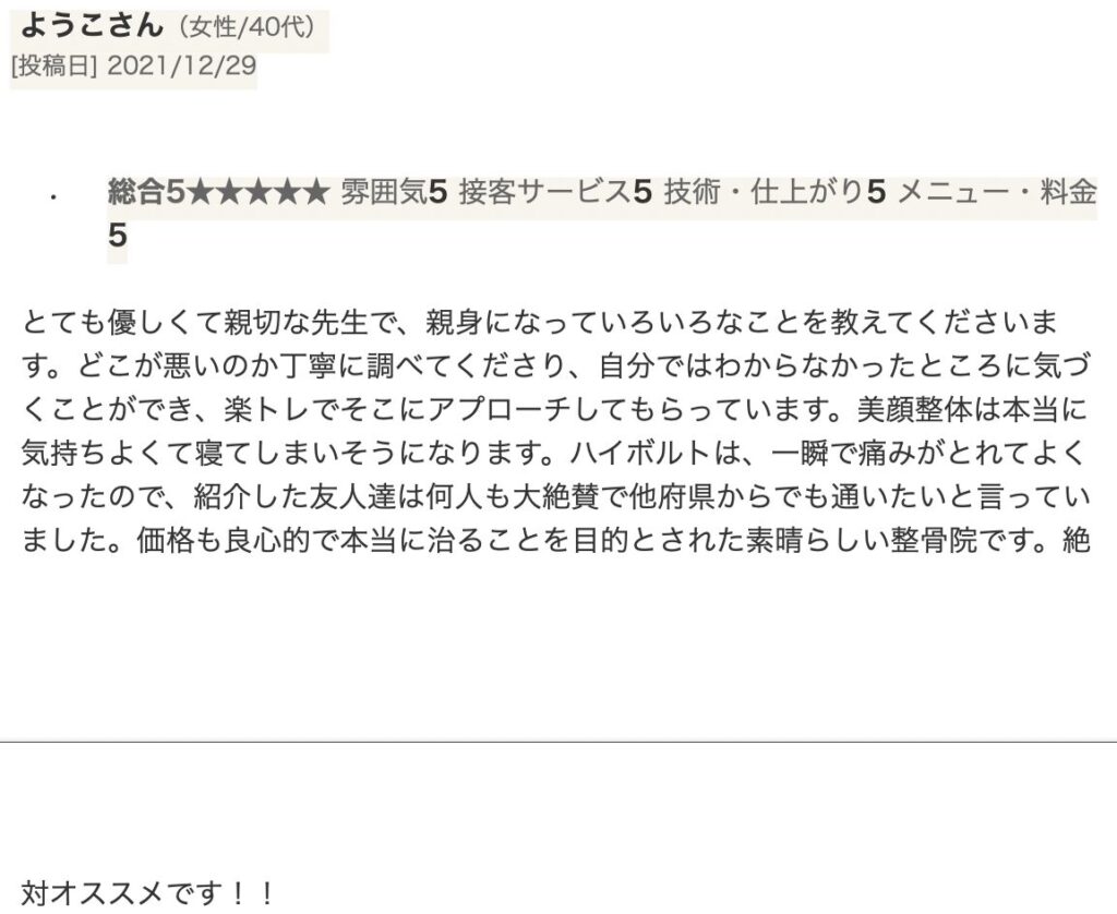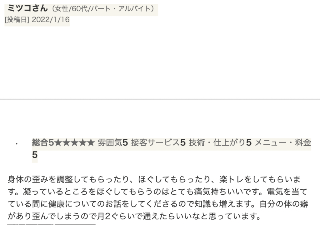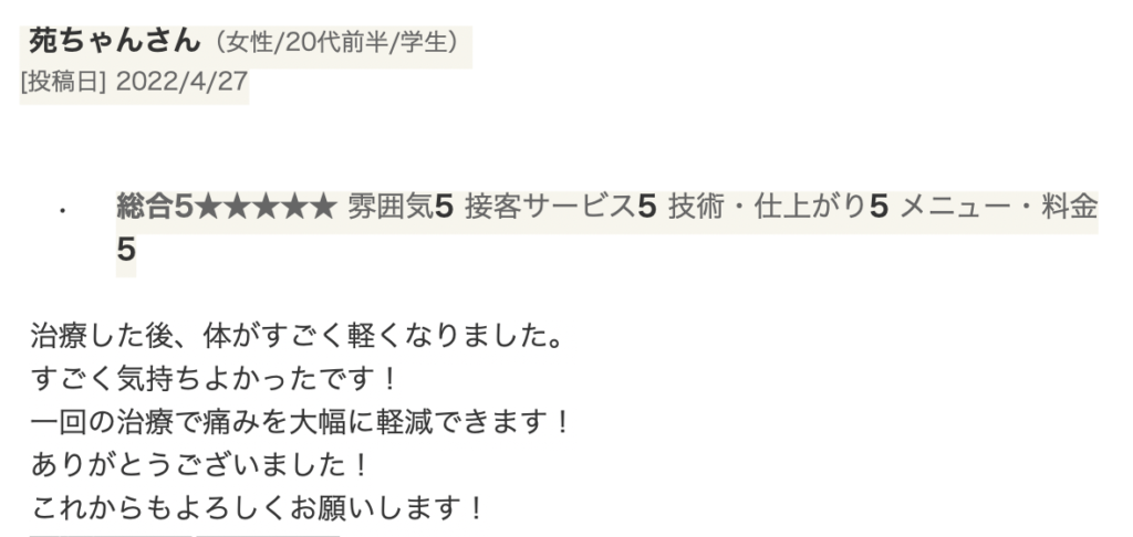 ハイボルト施術を初めて受けましたが受けた次の日は肩が嘘みたいに軽くなっていて驚きました。