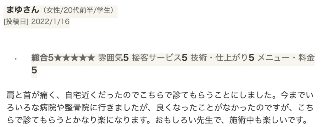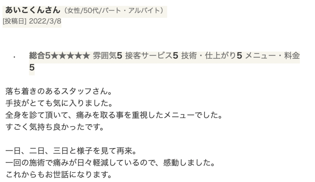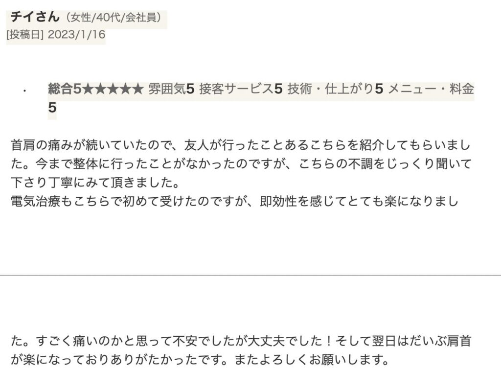 肩こりが酷くどこがいいのか探している時に、最近オープンされたとの事で、