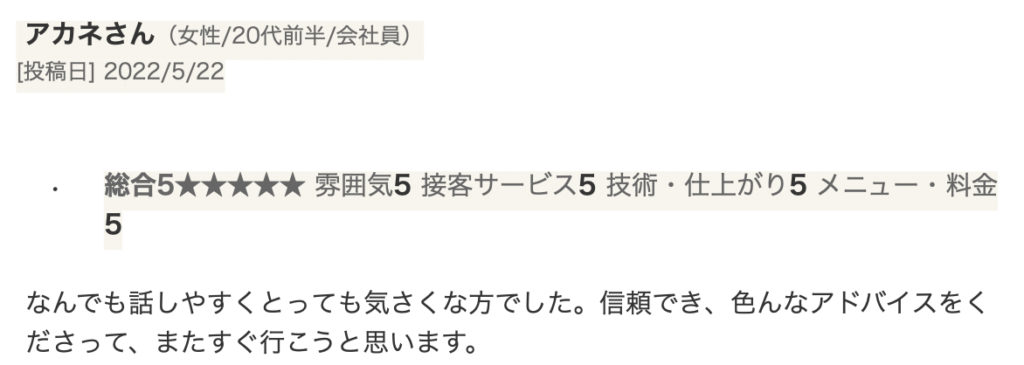 また治療中も楽しいお話をしてすごく楽しかったです。
