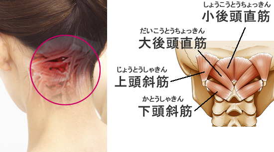 - 両手の指を使って後頭下筋を優しくマッサージします。