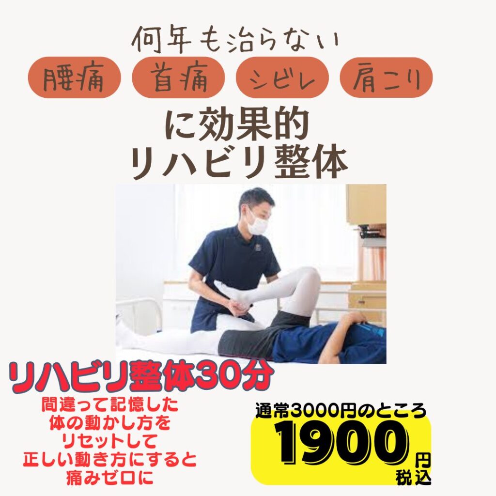 【頑固な腰痛に リハビリ整体30分コース 12/30までの限定価格】 LINE予約する リハビリ整体の具体的な施術の流れ 今すぐLINE予約する 【ねじれ筋のばし整体30分コース 11/30までの限定価格】 LINEから予約する